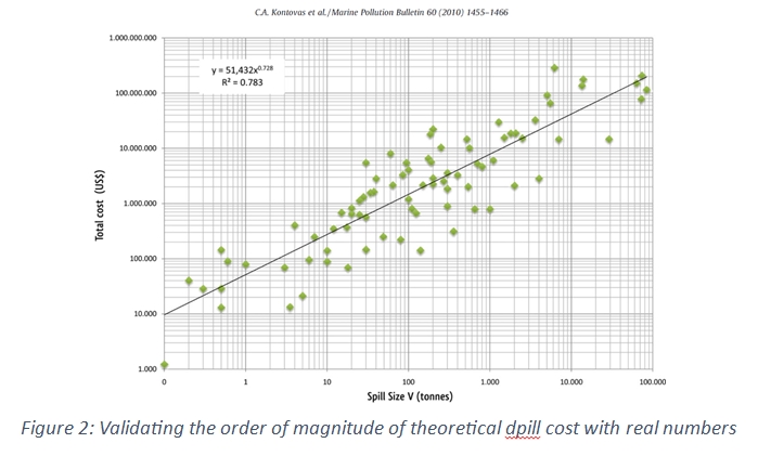 To validate the theoretical model, the following figure 2 presents actual spill costs which were collected by researchers from National Technical University of Athens: