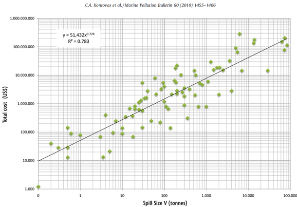 To validate the theoretical model, the following figure 2 presents actual spill costs which were collected by researchers from National Technical University of Athens: