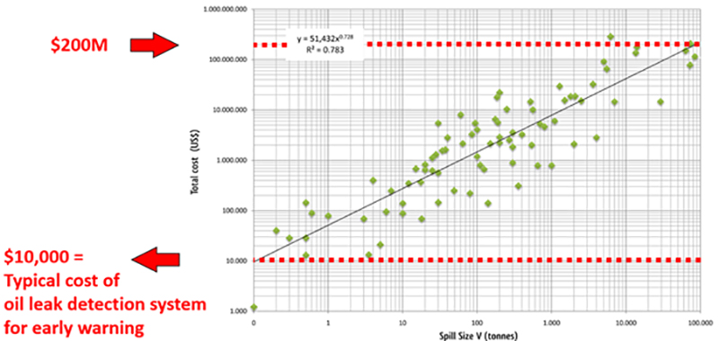 Figure 3: Real costs of oil spills, compared with the cost of an oil leak detection system